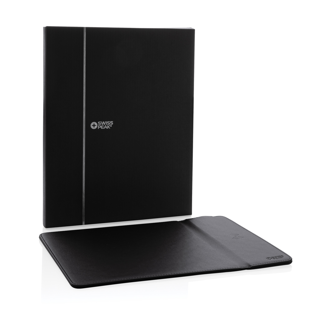 Swiss Peak RCS recyceltes 10W Wireless-Charging PU Mauspad, schwarz