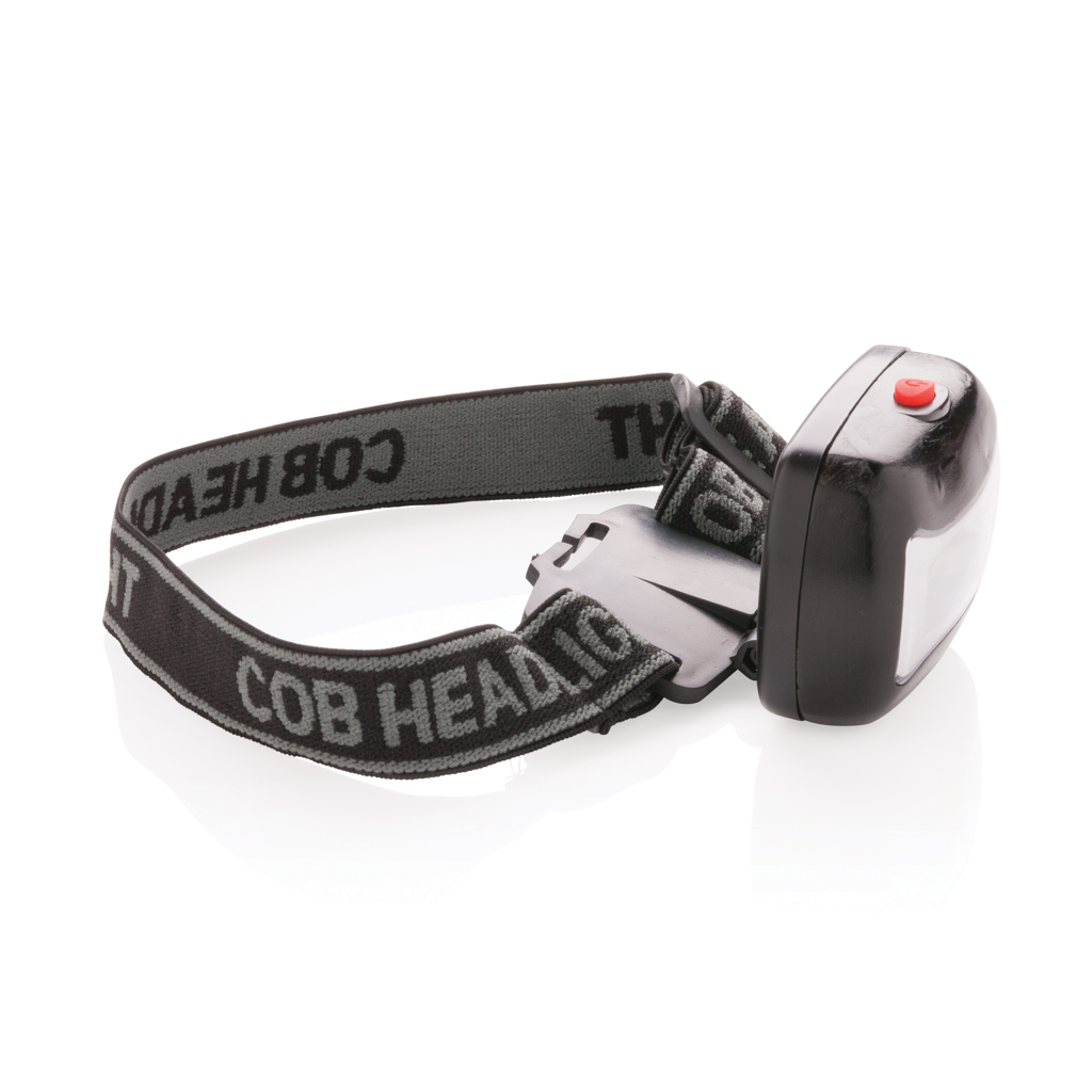 ABS Kopflampe mit ultra-hellen COB-Leuchten. Verstellbares Kopfband. Inklusive Batterien.
